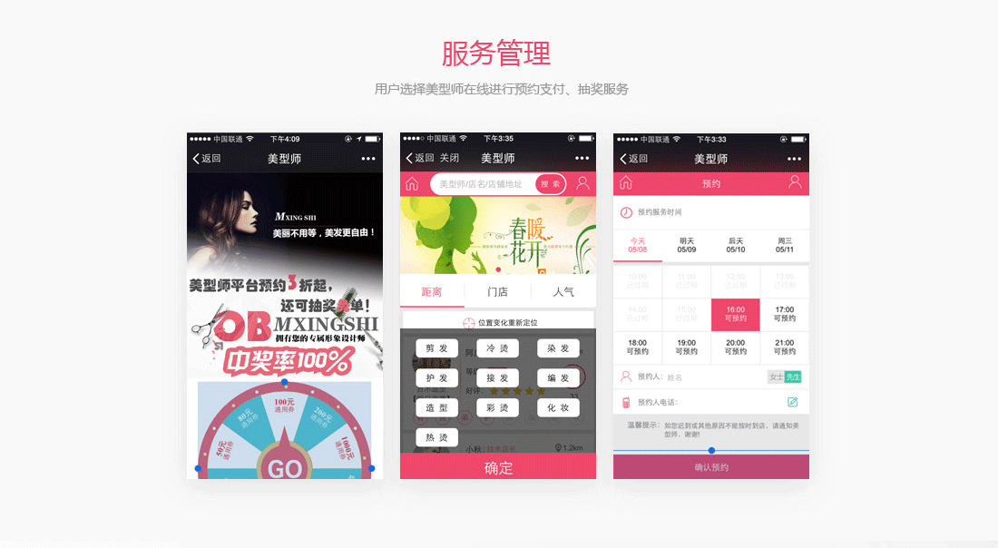 说明:微信:在线预约美型师、支付、定位周边美发店